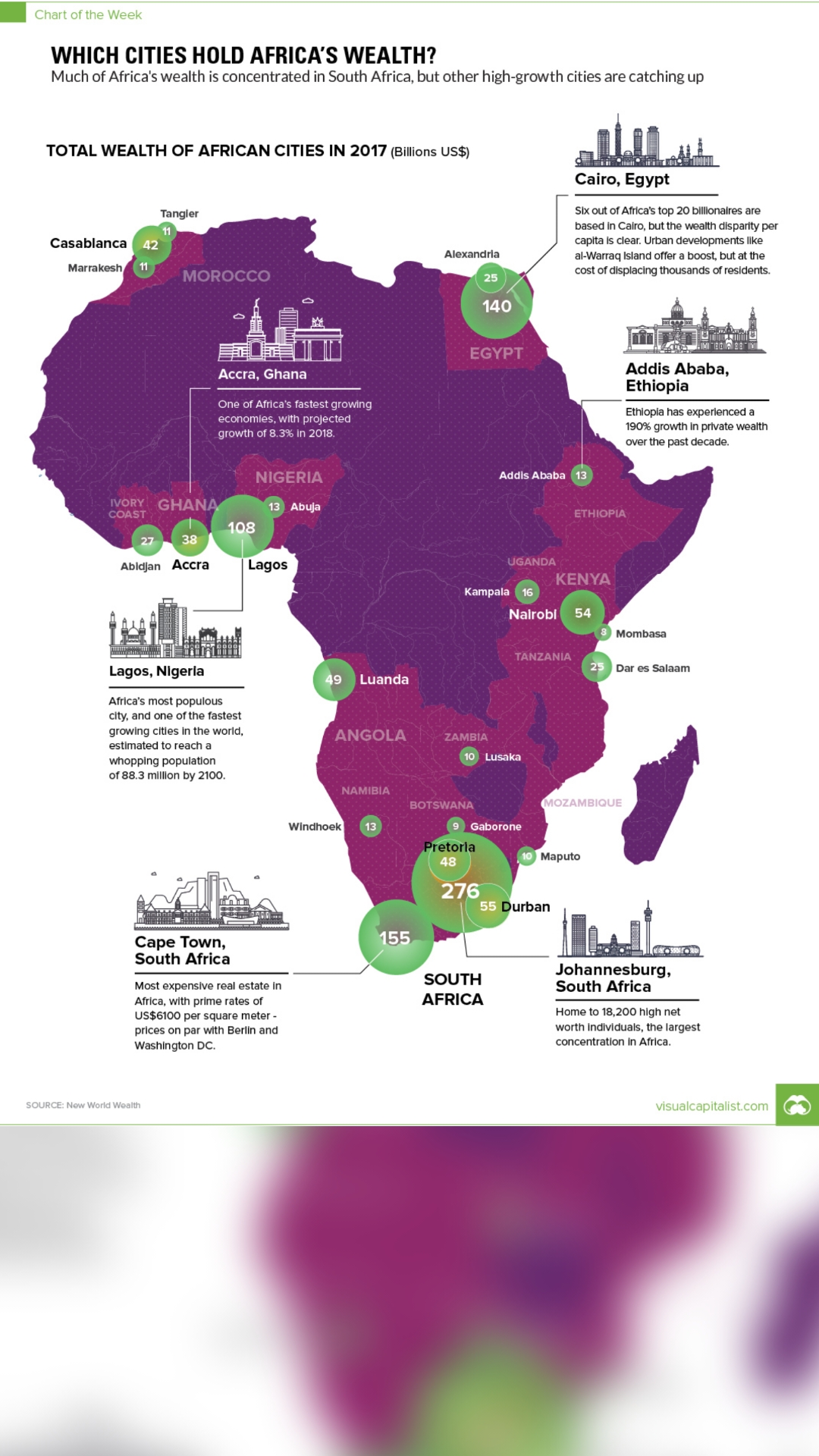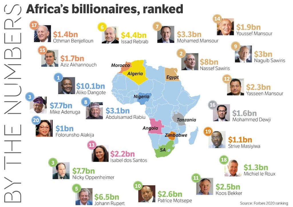 The African continent is home to 46 billionaires, the second-lowest total of any global region.